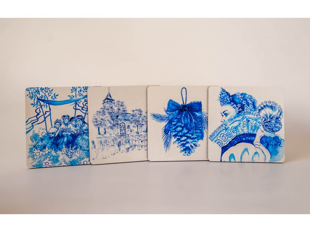 4 různé motivy lidových tradic s kresbou Zuzany Osako.